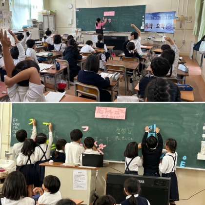 ハングルの表を見ながら、文字の学習をしていきました。音楽やスライドで楽しく学習していくことができました。子どもたちの理解が早いのに、少し驚きました。