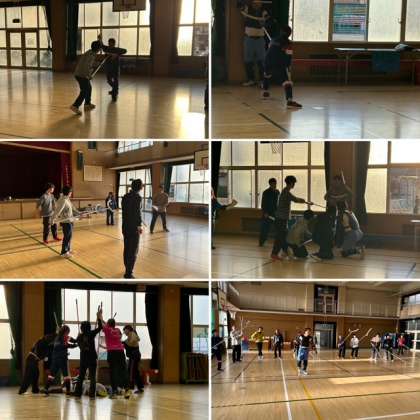 本日、教職員の訓練として不審者が校内に入り、危険な状況になった時に使う「さすまた」の訓練を、セーフティ淀川さんに来ていただいて実施しました。