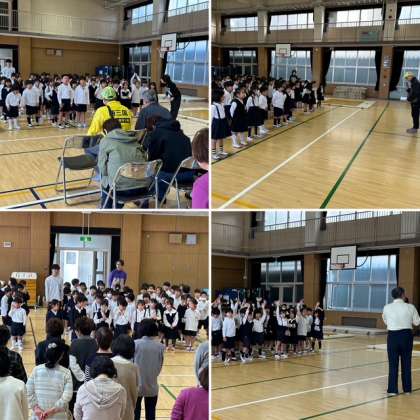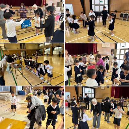 地域とのふれあい活動として、1年生が昔遊び体験をしました。地域の皆さん、PTAの皆さんのお世話になり、ストローとんぼ、お手玉、ぶんぶんごま、けん玉、こま回しの5つの体験をしました。
