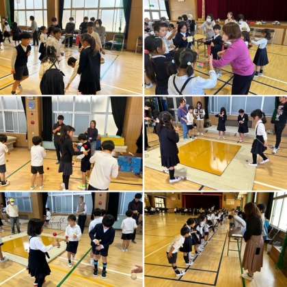 2年生は昨年昔遊びを経験していることもあり、なかなか上手で驚きました。けん玉やこま回しは、昔の子どもがタイムスリップしてきたかと思わせるぐらい上手な子もいました。