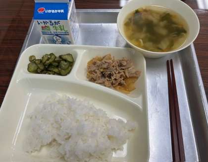 コチジャンは米みそ、とうがらしから作られる食品です。韓国・朝鮮の料理によく使われます。今日の豚肉のコチジャン炒めは、子どもたちが食べやすい味付けで、1年生の子どもたちにも大人気でした。