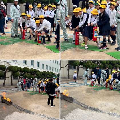 実際に火を起こしてその火を消すので本格的です。子どもたちは、火元を狙ってとても上手に火を消せていました。