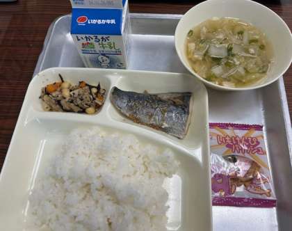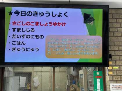今日の給食のすまし汁と大豆の煮物には、けずりぶし(さばぶしと煮干しを混ぜたもの)とこんぶでとっただしが使われています。