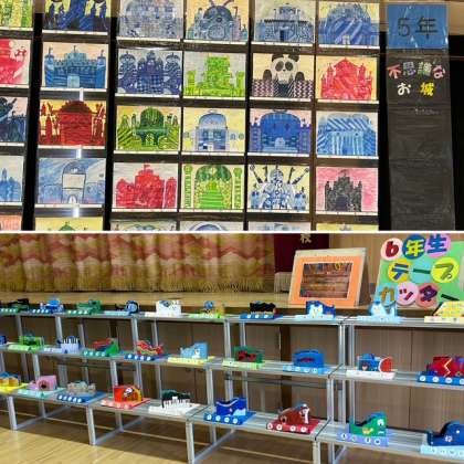 今日から作品展が始まります。各学年で取り組んできた作品が講堂に勢ぞろいしました。1つ1つの作品それぞれに想いが込められていて、夢の世界が広がるとても素敵な空間になっています。