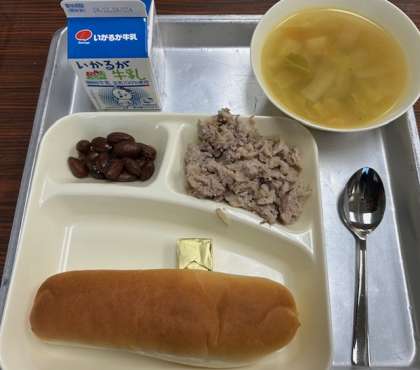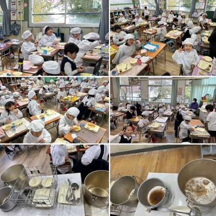 今日の午前中の授業で「すききらいなくたべよう」の学習をした1年生は、がんばって好き嫌いしないで給食を食べようとがんばっていました。食缶が空っぽです。