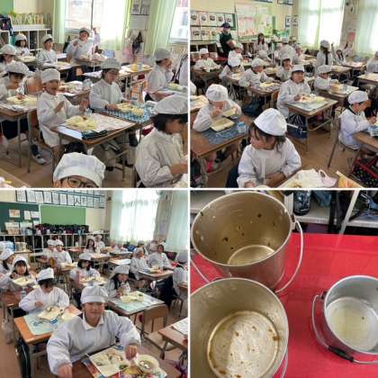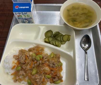いつも良く食べる3年生は、今日も食缶は空っぽです。ピリ辛丼も人気でした。今日が11月最後の給食でしたが、12月より3年生は牛乳がストローレスとなります。環境に配慮した取り組みとして、段階的にストローレスへと移行しています。