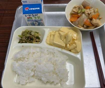 卵どうふは、卵にけずり節でとった出汁、みりん、塩、薄口しょうゆを加え、焼き物機で蒸して作った手作り卵どうふです。子どもたちにも人気でした。