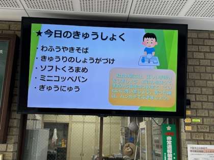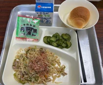 焼きそば、ソフト黒豆は子どもたちに人気のメニューです。しっかり食べてくださいね。