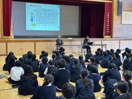 西川文化財団さんに来ていただき、5年生に睡眠の大切さについてお話をしていただきました。この取り組みは、子どもの睡眠習慣改善のために、淀川区が行っている「ヨドネル」事業の一環として行っているものです。