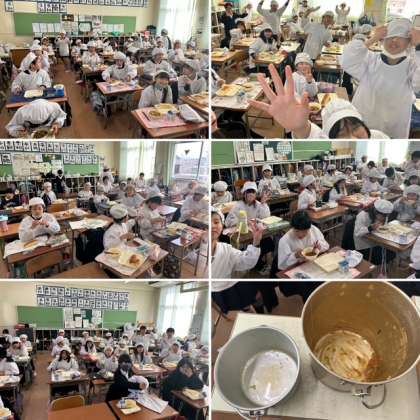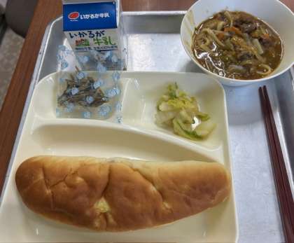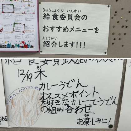 今日のカレーうどんも給食委員会のおすすめメニューです。今日のような寒い日に、カレーうどんは体が温まって美味しいですね。