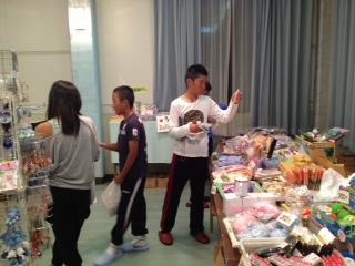 夕食後は、買い物をしました。子どもたちは、真剣な表情でお土産を選び、良いものが見つかると、にっこりと笑顔になっていました。お土産を渡すときのことを想像していたのでしょうか。「お土産を渡す人がいっぱいいて、たいへん」と言いながらも、楽しそうに買い物をする姿があちらこちらで見られました。