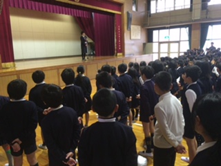 元気よくみんなで「あけましておめでとうございます!」のあいさつをしました。そして、今年の目標を一人一人しっかりたてましょう、そしてその目標に向かって努力を続けましょうという話を聞きました。また、冬休みの過ごし方のふりかえりを行い、これからも気をつけて毎日を過ごすことを確認しました。その後、校歌を歌ってそれぞれの学級に戻りました。ピリッとした空気が流れた始業式で、みんなの頑張ろうという気持ちがとても感じられました。