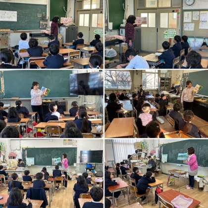 今日のお話会は2年生と6年生です。いつものように読み聞かせボランティアの「ほうせんか」さんによる絵本の読み聞かせをしていただきました。