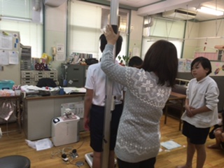 今日から発育測定が始まりました。身長と体重を測りました。ずいぶん背が伸びた子もいました。