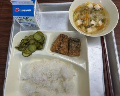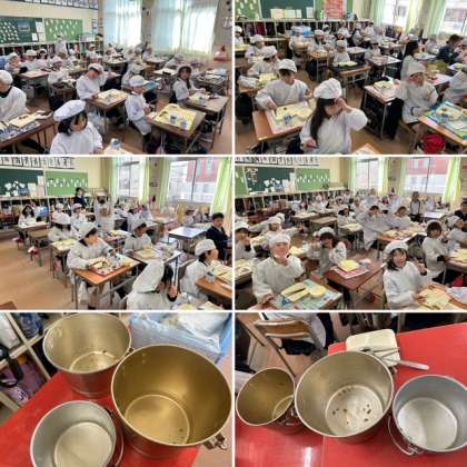 魚が苦手な子も食べやすいカレー味の竜田揚げです。3年生の子どもたちも美味しそうに食べていました。食缶はどのクラスも空っぽです。3年生はいつもよく食べます。