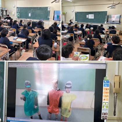 その後は各クラスで、給食委員会の委員会発表の動画を視聴しました。給食委員会の子どもたちが扮する赤、黄、緑の栄養レンジャーが登場して、観ている子どもたちは大盛り上がりでした。元気な体を作るために、好き嫌いをせずに赤、黄、緑の食べ物をバランスよく食べようということを楽しくわかりやすく伝えてくれました。