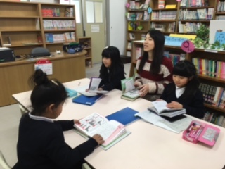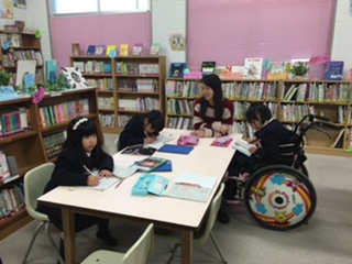 いきいき活動の子どもたちが、図書室で本を読んだり勉強をしたりしています。