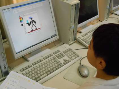 重田さんが立ち上げたflipbitというホームページで、最初は「あいうえお」を話す顔のアニメーションを作りました。次により自然に歩く様子を、最後に運動会で踊ったソーラン節の動きを作りました。最初は操作の仕方が分からず戸惑っていたのが、あっという間に慣れて、どんどんユニークなアニメーションを作っていました。