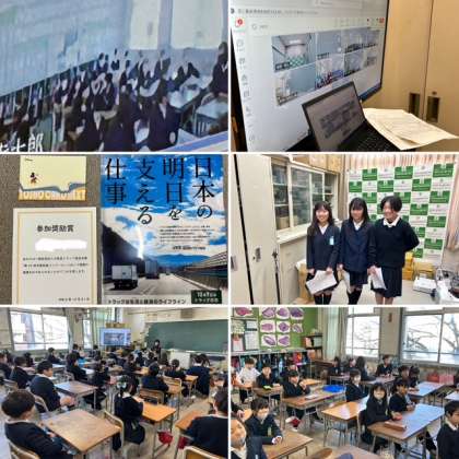 最初に大阪府トラック協会主催の「児童絵画コンクール」に入賞した4名(1名欠席)の子どもたちの表彰をしました。表彰状と副賞の図書カードが贈られました。がんばりましたね。おめでとう!