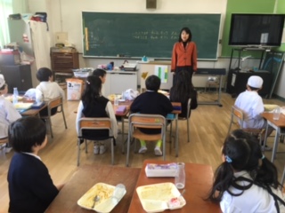 民族クラブのソンセンニムが、給食の時間に入ってくださいました。韓国の新年の挨拶の仕方、お正月の行事、料理などについてお話ししてくださいました。