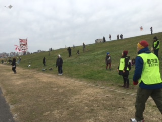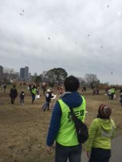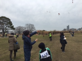 コツをつかみ、風に乗るとうまく、高く上がりました!お父さん、お母さんも一緒に凧揚げを楽しんでおられました。