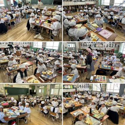 1年生の教室では、みんな落ち着いて、仲良く給食を食べています。4月当初はたいへんだった給食の準備もスムーズに出来ています。先週の学習参観でも感じましたが、子どもたちの1年間の成長は、目を見張るものがあります。