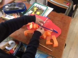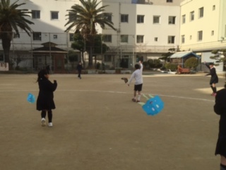 それぞれ工夫して作りました。6時間目は風があり、クルクルよく回ってあがりました。