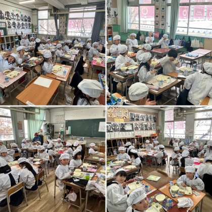 1年生な子どもたちも、たくさん給食を食べています。「お増やし」にはたくさんの子が手を挙げて、大盛りにして食べていました。
