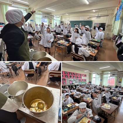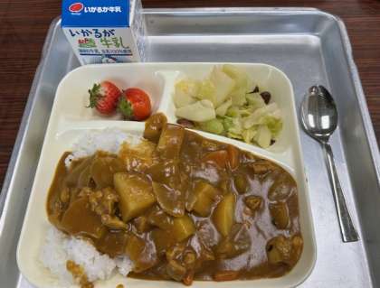 子どもたちに人気のカレーライスも今年度最後です。4年生の教室では、食缶が空っぽになっていました。そしてそれを上回る人気者は、この季節限定のいちごです。残ったいちごがほしい子どもたちがたくさんいて、先生とのじゃんけん大会が行われていました。かなり競争率が高そうです。栄冠は誰の手に?