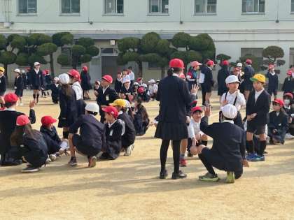 6年生を含めた全校のみんなで集合するのはこれが最後です。1年間縦割り班で一緒に活動した6年生に「ありがとう」を言って、手を振りながら別れていく姿は、とても心が温まりました。