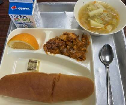 今日の給食の時間に流れている曲は放送委員会の子どもたちの好きな曲です。3年生の子どもたちはノリノリになりながら給食を食べていました。とうふのミートグラタンは「お増やし」希望がたくさんいて人気でした。