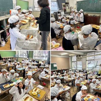 2年生は1つお兄さん姉さんになって、給食当番も自分たちでがんばっています。