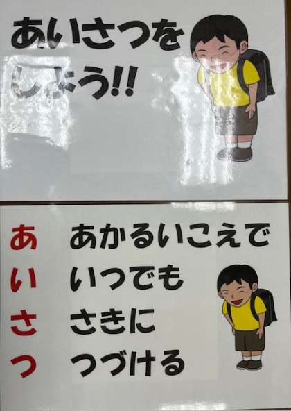 校長からあいさつについて話をしました。あいさつでは「あ」あかるいこえで、「い」いつでも、「さ」さきに、「つ」つづける ということを意識しましょうという話をしました。