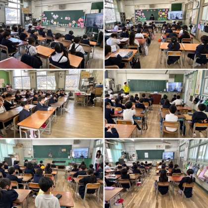 1年生、2年生の学級では、聞く姿勢を注意しながら、お話をしっかりと聞いていました。