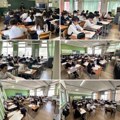 どの教室も静まり返っていて、みんな必死にテストの問題と向き合っていました。がんばれ!