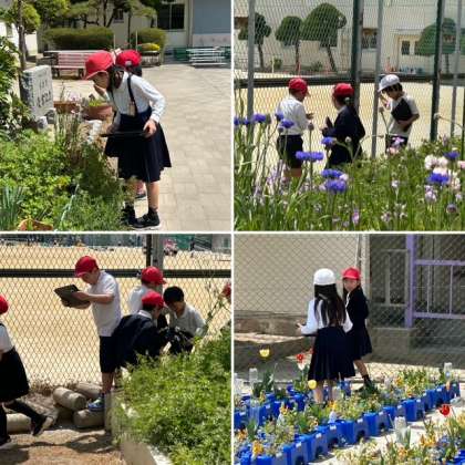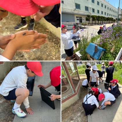 3年生は新しい学年になって、理科の学習が始まりました。今日の授業では、校庭の花や虫の絵をかくために、タブレットで写真を撮ります。子どもたちにはだんご虫が人気のようで、小さいだんご虫をできるだけアップにして撮影をしていました。