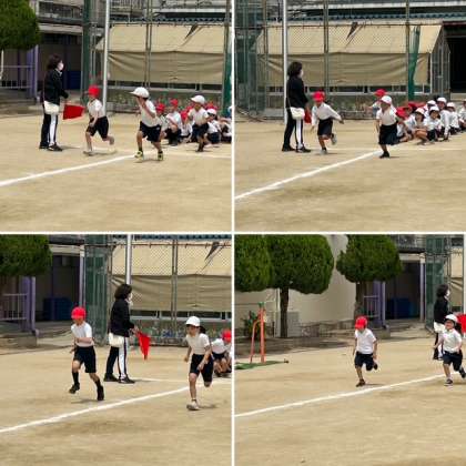 50メートル走は、スタートではみんな緊張した様子で合図を待っていました。そして「よーいどん!」で元気に飛び出して行きました。