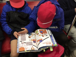 帰りの電車では、ちょっと疲れて眠る子、分厚い図鑑に見入る子、おしゃべりを楽しむ子、電車に乗ってとっても満足した子などなど。12人がそれぞれの思いで遠足を楽しむことができました。付き添ってくださったお母さん達、ありがとうございました!