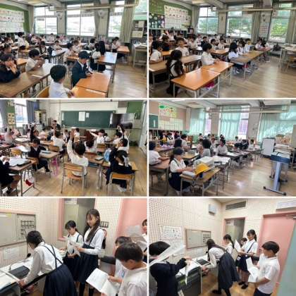 1年生と2年生の教室をのぞいて見ると、担任の先生に関するクイズも出題されていて、先生の意外な?面も知れて、とても盛り上がっていました。