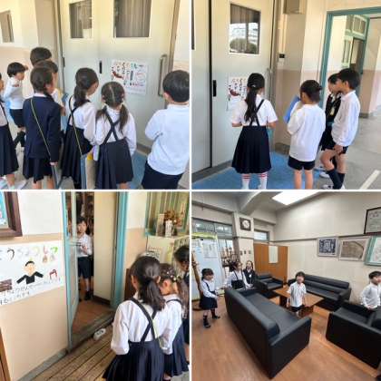 校長室の中を見ることができたグループもありました。校長室と職員室が中でつながっているという「ひみつ?」を知ることができてラッキーでしたね。