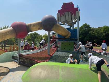 3年生の春の遠足に引率している先生から写真が送られて来ました。天気に恵まれて、遊具などで楽しく遊んでいます。