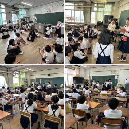 それぞれの班の教室では自己紹介をし、残った時間でゲームなどをして楽しんでいる班もありました。6年生がしっかりとリーダーシップをとって活動をしています。どの教室も温かい雰囲気で、6年生がとても頼もしく思えました。これからの児童集会が楽しみですね。