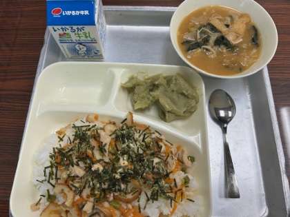 3年生では、給食の準備は全部自分たちでしていました。食べる量もかなり増えてきています。残ったもののじゃんけんもたくさんの子どもたちが参加しています。
