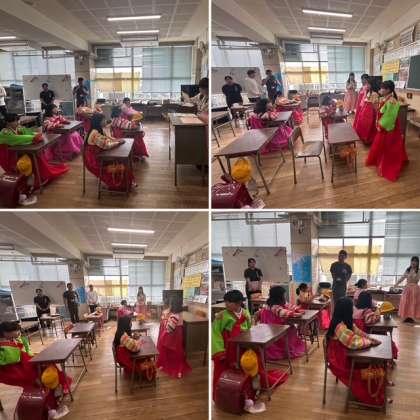 開級式の後は、みんなで「イルムバスケット」をしました。「イルム」というのは「名前」という意味です。フルーツバスケットの要領で、何人かの名前を言って席を移動するというゲームです。開級式では、少し緊張していた子どもたちも、笑顔で元気いっぱい楽しんでいました。