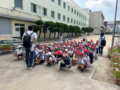 2年生が春の遠足に出かけます。行き先は千里中央公園です。長い滑り台が人気の公園で、子どもたちも楽しみにしています。みんな笑顔で出発していきました。