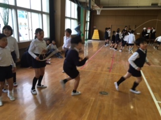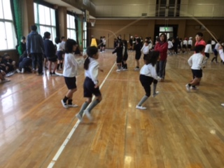 昼休み、なわとび大会がありました。今日までみんなで力を合わせて練習してきた成果を発揮する時です。体育館に跳んだ回数を数える声と応援の声が響き渡りました!結果は後日発表です。
