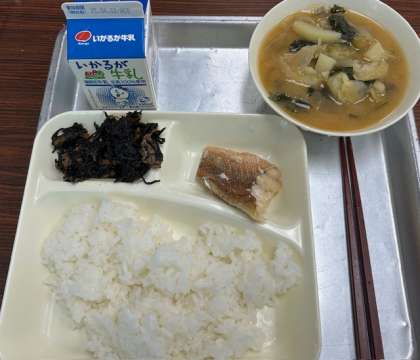 今日のメニューのひじきは、骨や歯を強くするカルシウムや、お腹の調子を整える食物繊維がたくさん含まれています。しっかりと食べましょう!