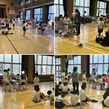全学年で歯科検診を行いました。講堂で4つのブースに分かれて、下の学年から順番に全員が歯医者さんの先生に歯のチェックをしていただきました。