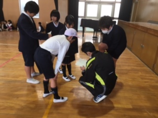 6年生が跳んでいる様子を見て、1年生が、「カッコイイ!」「すごく速くてびっくりした!!」など、あこがれ目線でした。運動委員会の子ども達もご苦労様でした。