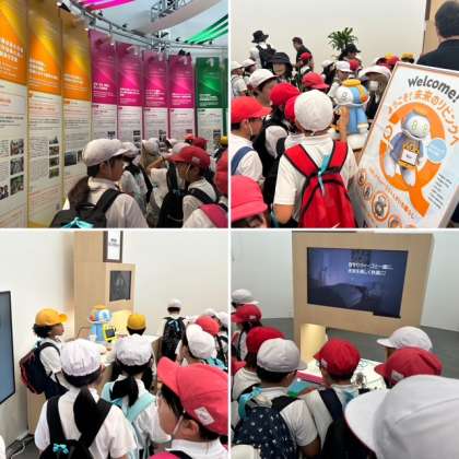4年生はガンダムパビリオンと三菱未来館に分かれてパビリオンの見学をしていましたが、ガンダムパビリオン前で全員が合流しました。